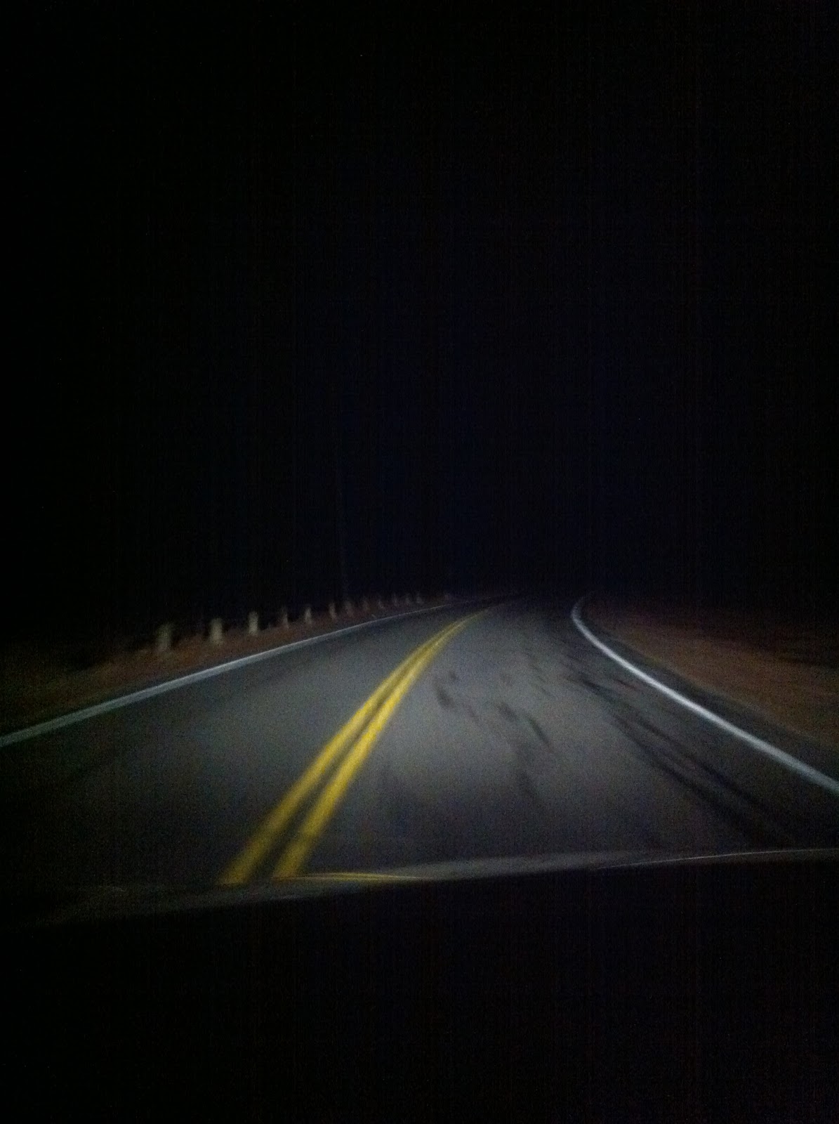 The other night I was driving home and not sure why but I pulled out my phone and took a pic of the road ahead of me. I take pics all the time during the day… clouds..sun… sunsets… what have you. But there was nothing to see. Only after I took the pic and looked at it later when I got home… did I realize why I was guided to take it…